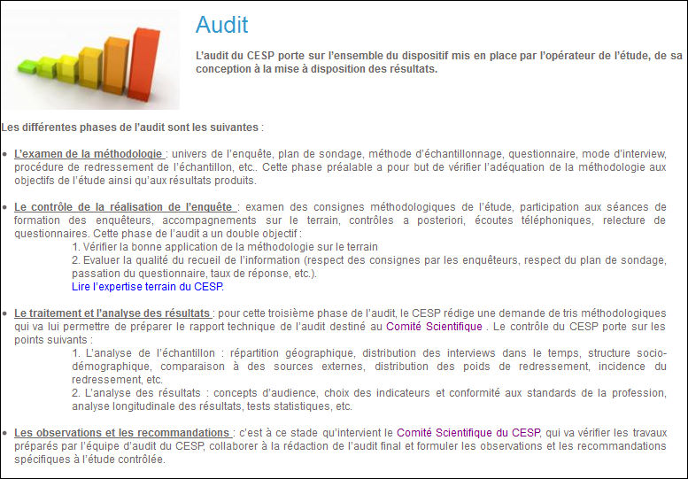 Un exemple de corrections apportées à un panel Internet après un audit du CESP et ses recommandations :