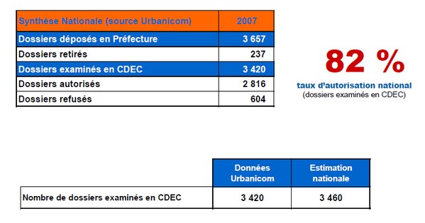 Le bilan 2007 des CDEC (source Urbanicom)
