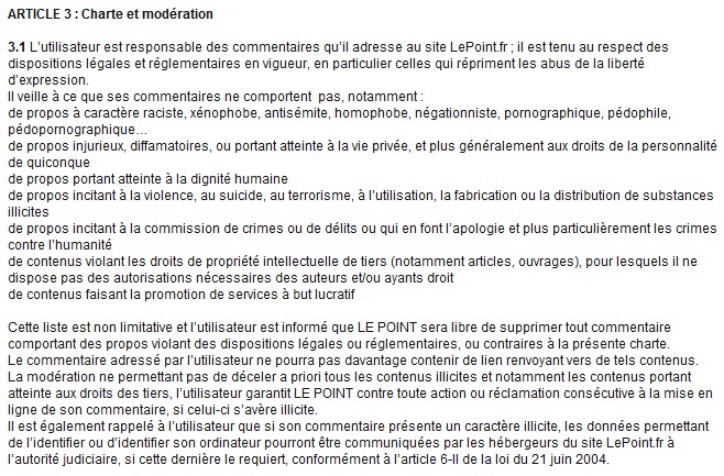 La politique de modération, s'applique entre autres, sur les forums, sur les espaces commentaires relatifs à des articles de presse ou blogs ou sur les avis produits.
