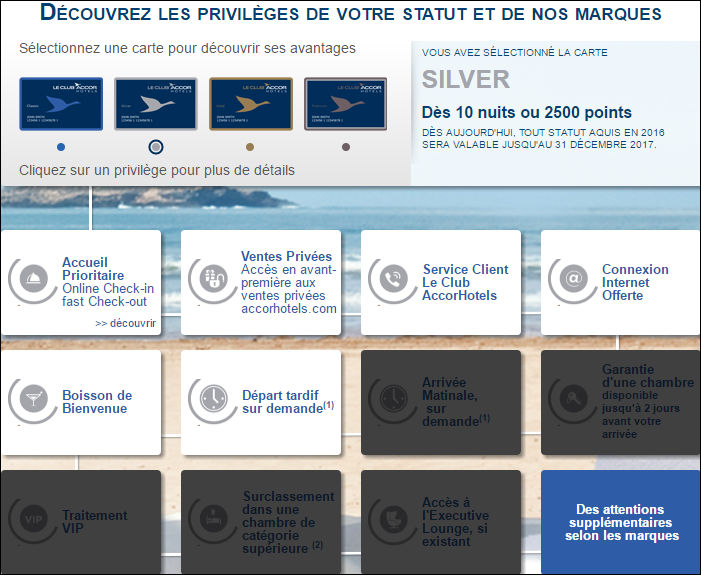 Les "privilèges" accordés en fonction du statut de fidélité dans le cadre d'un programme de fidélité hôtelier :