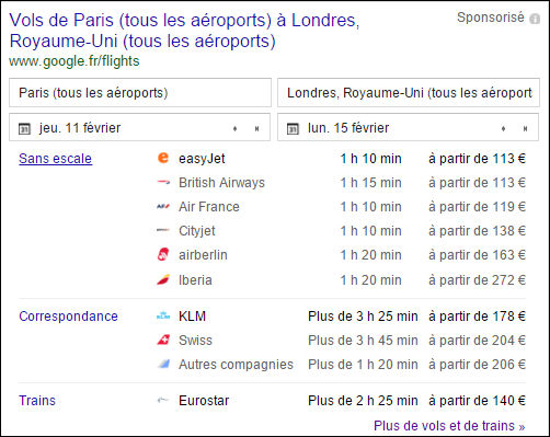 En ce qui concerne le développement de nouveaux services rémunérateurs pour Google, le cas le plus évident est évidemment celui du développement du service Google Shopping. Celui-ci a fait de nombreuses victimes dans l'éco-système des comparateurs de prix dont évidemment Kelkoo qui a perdu une grande partie de sa valeur. Les interrogations portent maintenant sur le service Google Flights qui pourrait faire très mal aux comparateurs de vols et d'autres initiatives ont vu le jour ou sont à attendre dans d'autres domaines (assurances, voitures, hôtellerie, emploi, etc.). Bien sûr, ce phénomène pose potentiellement un problème d'abus de position dominante qui ne sera pas développé ici, mais qui est regardé de près par la Commission Européenne.